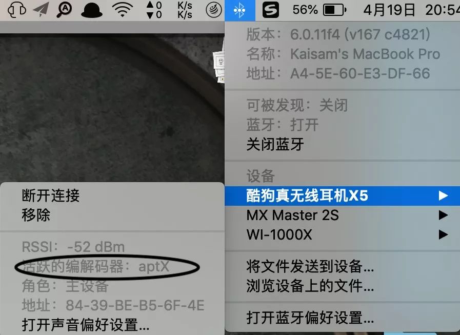 研究一番后发现,原来没有延迟的这四台设备,均支持 apt-X,而 iPhone 只有 AAC 和 SBC 协议,恰巧,酷狗 X5 只支持 apt-X 和 SBC,没有 AAC。所以我们大致可得,iPhone 上的延迟,是酷狗 X5 不支持 AAC、iPhone 不支持 apt-X 共同惹的祸。