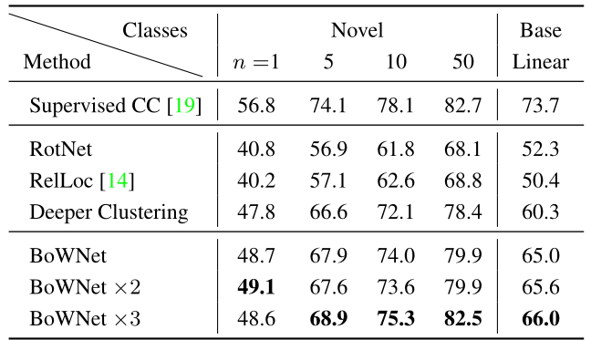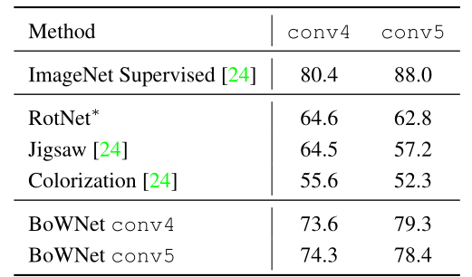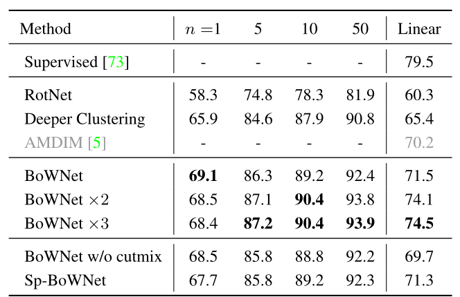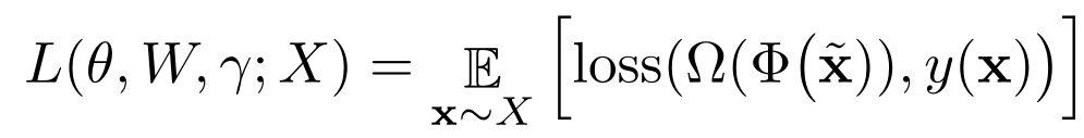 其中,W = [w_1,· · · ,w_K] 是线性层的 K 个 c 维权重向量(每个视觉词一个)。为了学习 convnet 模型,最小化预测的 softmax 分布Ω(Φ(x˜))和 BoW 分布 y(x)之间的期望交叉熵损失: