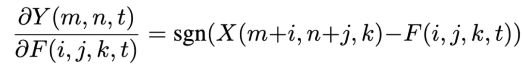 其中,i∈[m,m+d],j∈[n,n+d]。在 AdderNet 中,输出特性 Y 相对于滤波器 F 的偏导数计算为: