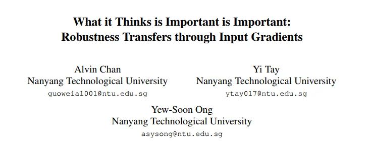 具体的,我们关注下面四篇文章: 1、What it Thinks is Important is Important: Robustness Transfers through Input Gradients2、ClusterFit: Improving Generalization of Visual Representations3、Learning Representations by Predicting Bags of Visual Words4、AdderNet: Do We Really Need Multiplications in Deep Learning? 1、What it Thinks is Important is Important: Robustness Transfers through Input Gradients