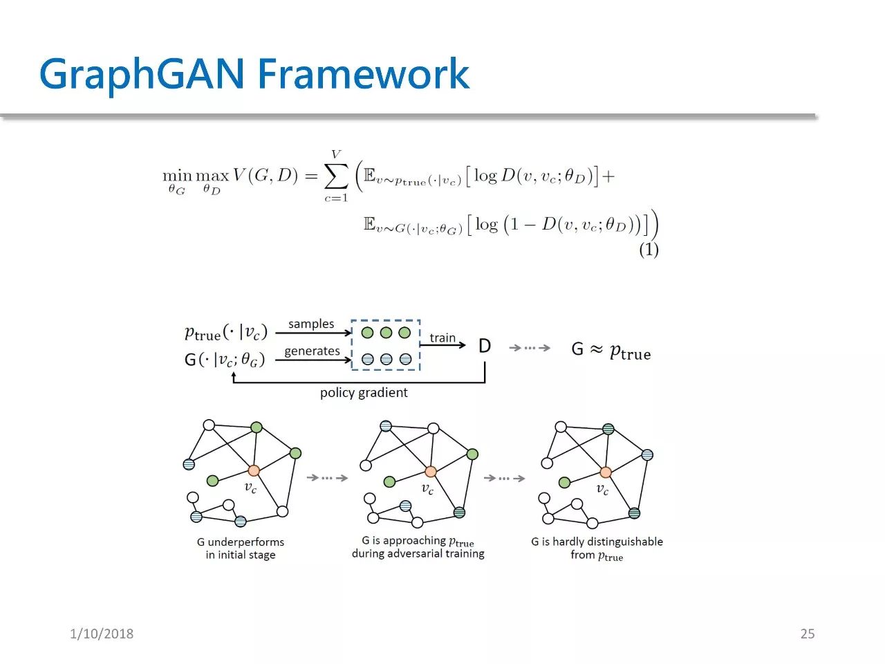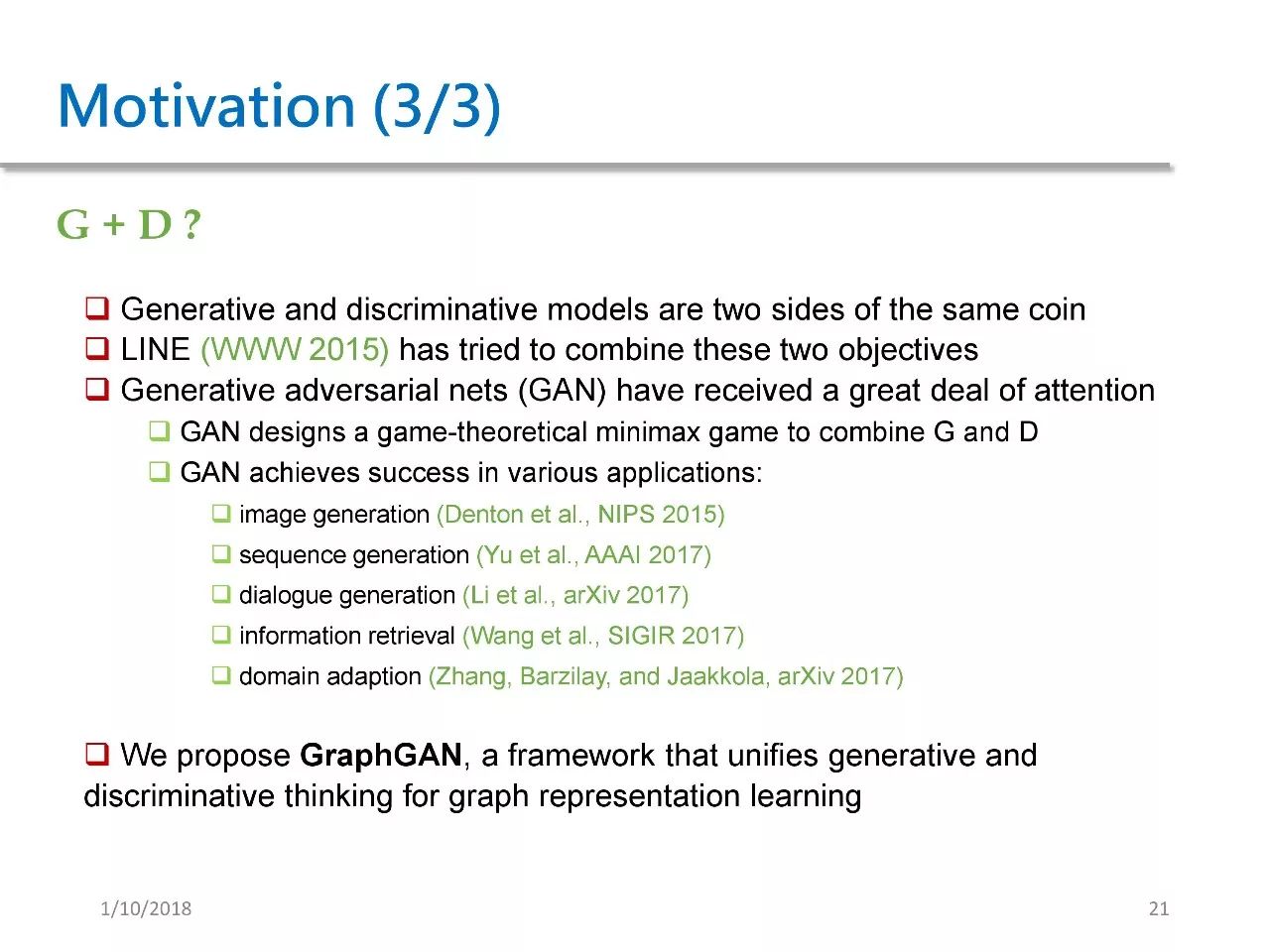 第二部分,我将为大家介绍我们发表在 AAAI 2018 上的一篇论文 GraphGAN: Graph Representation Learning with Generative Adversarial Nets。