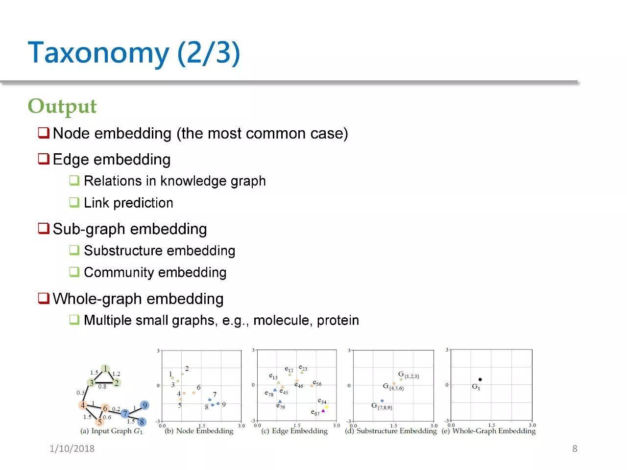 第三种方法会输出 sub-graph embedding,也就是子图的 embedding,包括子结构或团体的 embedding。