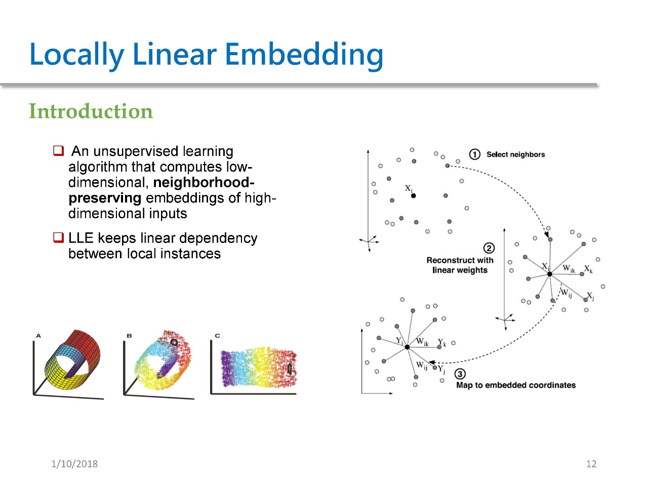Locally Linear Embedding 是一种典型的流形学习方法,它是指将高维空间中的输入映射到低维空间,并且在低维空间中保持邻居之间的线性依赖关系。