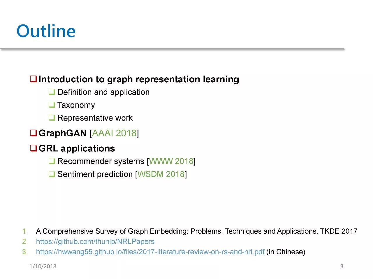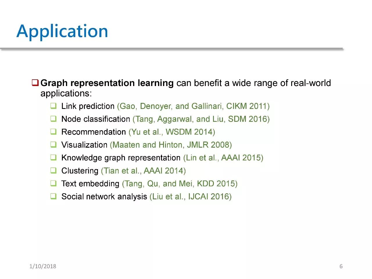 最后,我还将介绍我们在 Graph Representation Learning 领域的一些应用,包括推荐和情感预测。