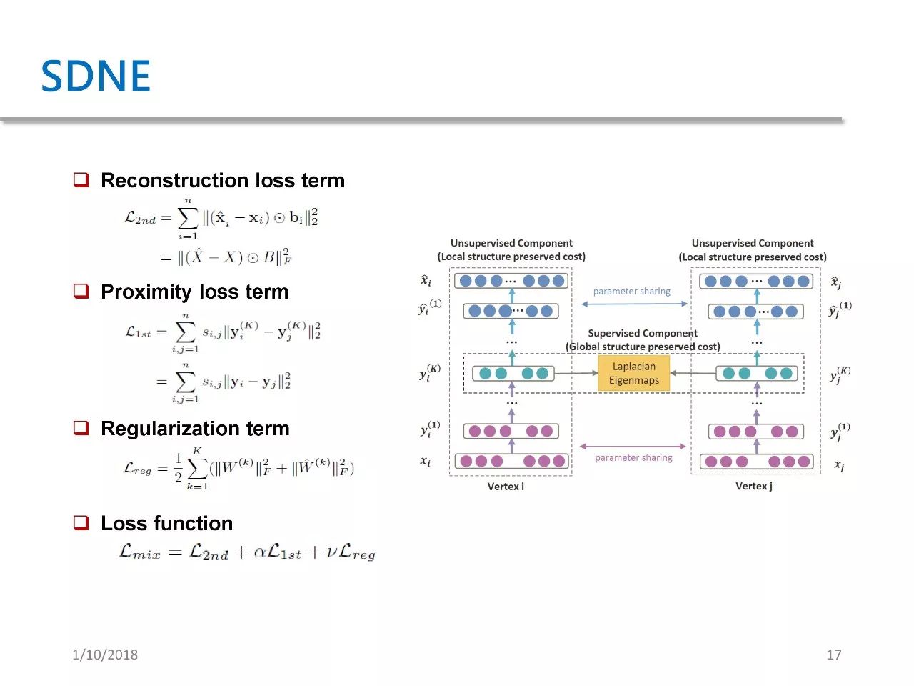 最后一篇是 SDNE,全名为 Structured Deep Network Embedding。这篇文章发表于 KDD 15,其本质就是基于 auto encoder 的一种 network embedding。