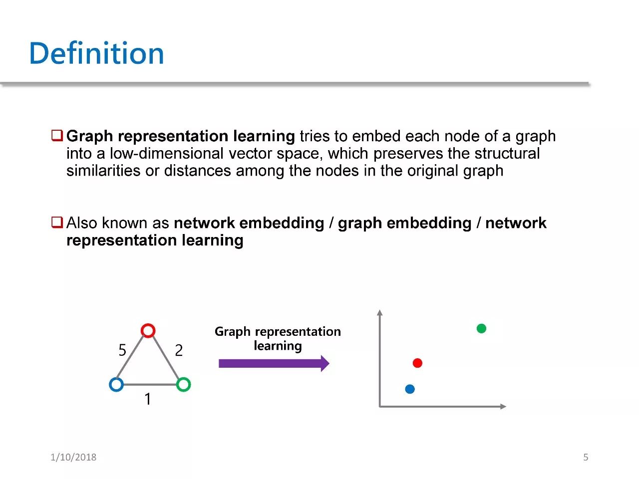 以上并非官方权威定义,Graph Representation Learning 目前没有任何官方定义或名字,它也可以被称作 Network Embedding、Graph Embedding 或 GRL。