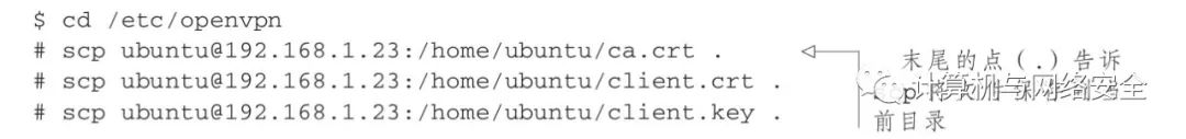 现在,可以切换到/etc/openvpn/目录并从服务器提取那些证书的密钥。将服务器的IP地址或域名替换为示例中的某一个: