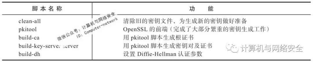 由于easy-rsa目录现在包含相当多的脚本,所以,表1给出了将用于实现密钥的工具的快速预览。