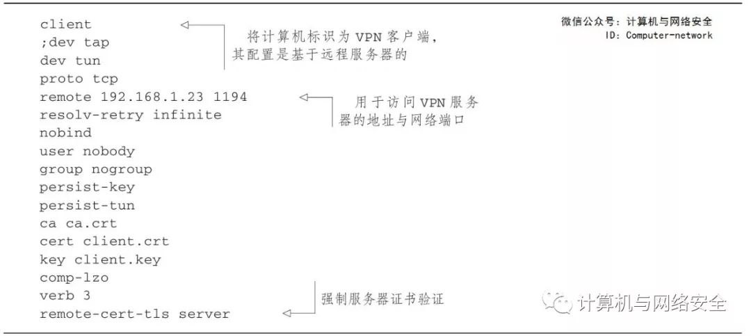 图5 VPN客户端/etc/openvpn/client.conf文件中的有效设置