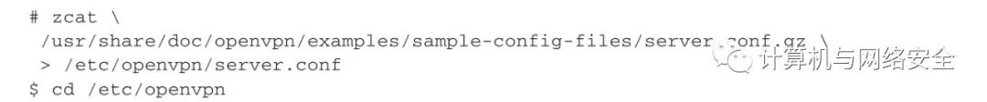 OpenVPN安装留下了一个可以复制到/etc/openvpn/目录的压缩的模板文件。我们用该压缩模板来介绍一个有用的工具:zcat。