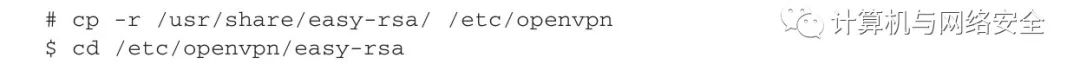 安装OpenVPN时,会自动创建一个/etc/openvpn/目录,但这还不是全部。openvpn和easy-rsa软件包中都提供了样本模板文件,可将这些文件作为配置的基础。若要启动认证过程,请将easy-rsa的模板目录从/usr/share/拷贝到/etc/openvpn/,随后切换到easy-rsa/目录: