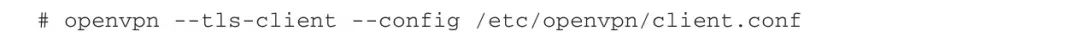 在客户端启动OpenVPN之前,并不会发生什么令人兴奋的事情。因为需要传递几个参数,所以,要从命令行开始操作。--tls-client参数告诉OpenVPN将作为一个客户端并通过TLS加密进行连接,同时,--config参数指向配置文件: