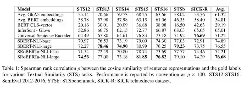 SBERT在SNLI和MultiNLI数据集上训练,其中SNLI包括了570,000对句子标注了矛盾(contradiction)、蕴含(entailment)和中立(neutral)关系