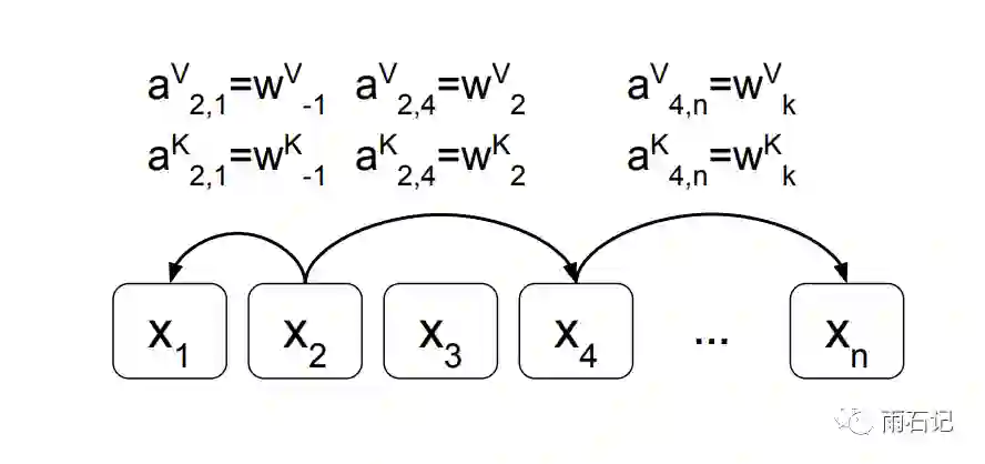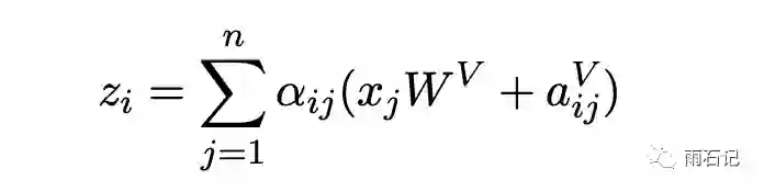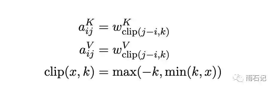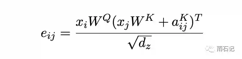 相对位置编码为每个不同的位置对都定义了两个向量,分别是αijV和αijK。在计算的时候,将上面的公式进行修改。