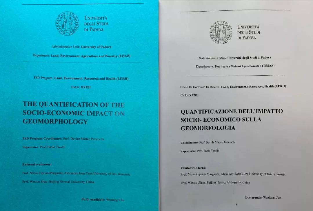目前,曹文芳博士通过视频答辩已经被大量国外媒体转发。曹文芳的博士导师Paolo Tarolli教授说:“曹文芳是我最聪明的学生之一,她的能量,热情以及最重要的是她的好奇心将永远伴随着我。我很荣幸在博士期间的这段旅程中为她提供了支持。博士这一旅程也有很多困难和失落的时刻,但我很高兴它以最佳结果结束"。帕多瓦大学的校长罗萨里奥·里祖托教授(Rosario Rizzuto)说:“这是充满希望和毅力的表现,帕多瓦大学及整个社会都对我们的博士生都表示赞赏。尽管客观上困难重重,但曹文芳博士向我们展示了知识是如何无限的,如何克服任何障碍”。
