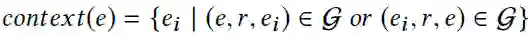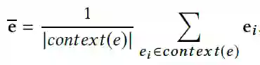 需要注意的是,为了更准确地刻画实体,我们额外地使用一个实体的上下文实体特征(contextual entity embeddings)。一个实体e的上下文实体是e的所有一跳邻居节点,e的上下文实体特征为e的所有上下文实体特征的平均值: