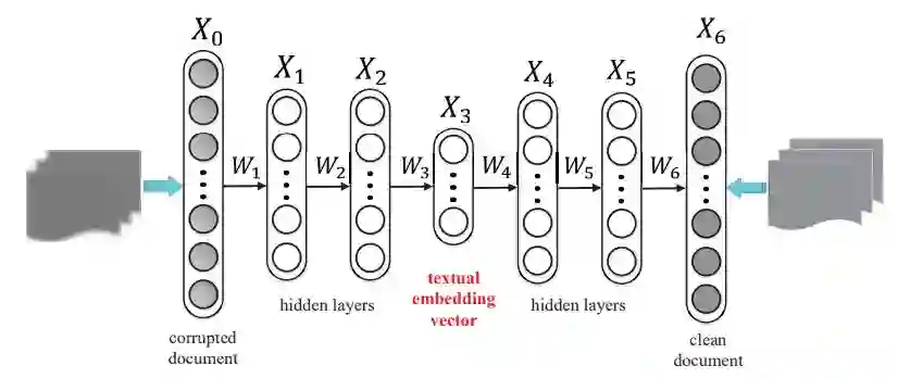 文本知识学习:去噪自编码器。去噪自编码器可以学习得到文本的一种泛化能力较强的向量表示;