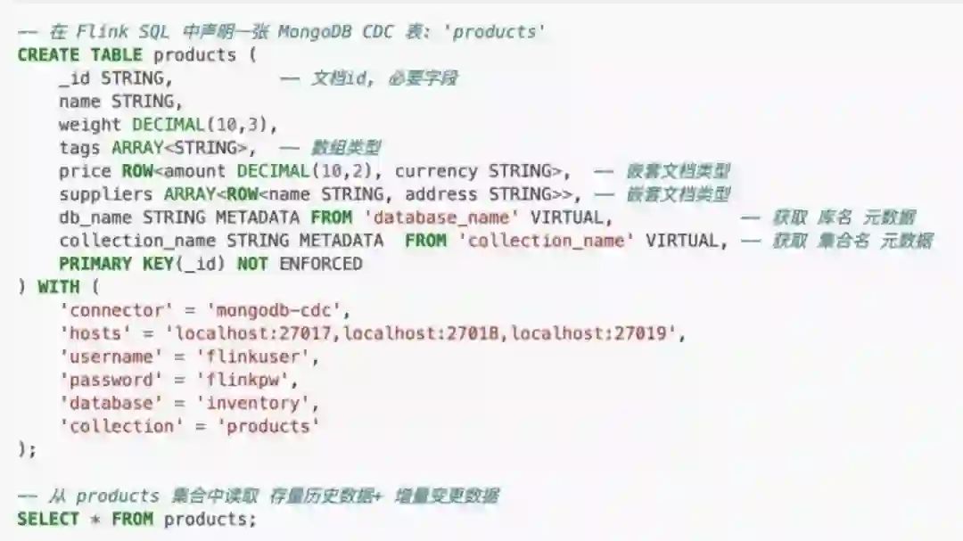 此外,MongoDB CDC 还提供了丰富的配置和优化参数,对于生产环境来说,这些配置和参数能够极大地提升实时链路的性能和稳定性。