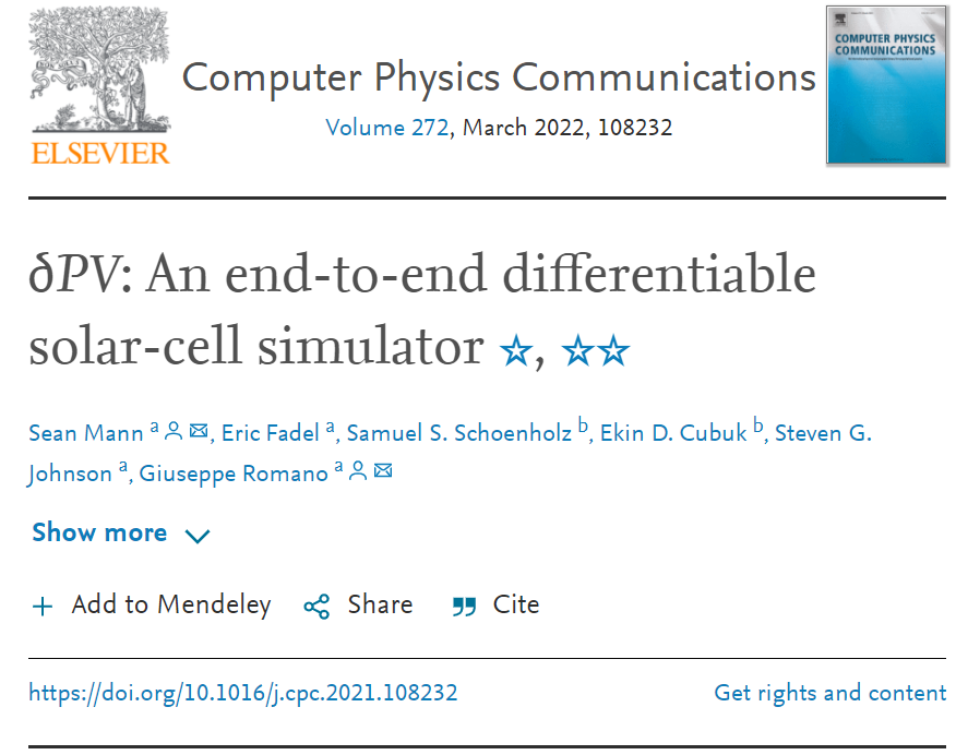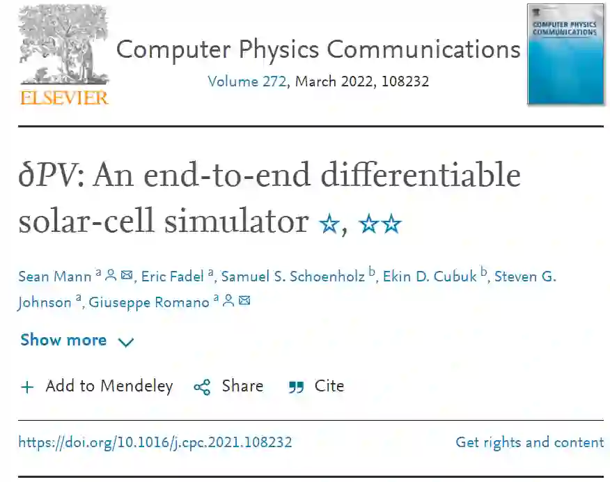 该研究以「∂PV: An end-to-end differentiable solar-cell simulator」为题,发表在《Computer Physics Communications》杂志上。