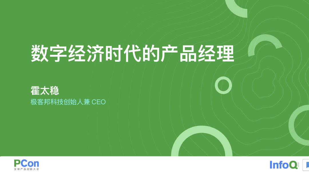 8 月 18 日,由极客邦科技旗下 InfoQ 技术大会举办——首届 PCon 全球产品创新大会在北京富力万丽酒店拉开序幕,极客邦科技创始人兼 CEO 霍太稳作为开场嘉宾,带来了主题为《数字经济时代的产品经理》的内容分享,以下为演讲整理。