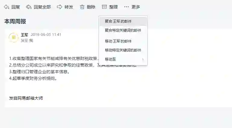 这里说的,并不止是通过网易邮箱大师管理其他第三方邮箱的功能——这是基本操作——而是它将管理能力下沉到了邮件层面。