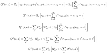 Bellman方程(贝尔曼方程)的动作价值函数可以以类似的方式推导出来。感兴趣的人可以在文章的最后看到具体的步骤。其最终结果如下: