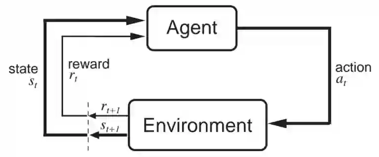 来自Sutton和Barto的书“Reinforcement Learning: an Introduction”(这是强烈推荐的)的这张图,很好的解释了智能体和环境之间的相互作用。在某个时间步t,智能体处于状态s_t,采取动作a_t。然后环境会返回一个新的状态s_t+1和一个奖励r_t+1。奖励处于t+1时间步是因为它是由环境在t+1的状态s_t+1返回的,因此让它们两个保持一致更加合理(如上图所示)。