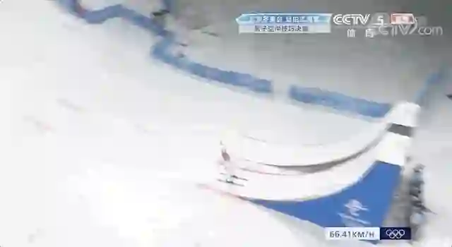 在女子空中技巧决赛中,她选择了难度系数4.293的动作,在空中完成3个连续360度转体的动作后,稳稳落地。