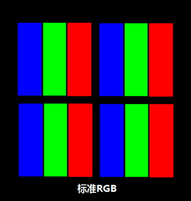 iPhone11使用的LCD屏幕,放大来看就是上图这样的“蓝绿红”像素点组成的。三个像素点大小统一,同样的分辨率显示更加细腻。