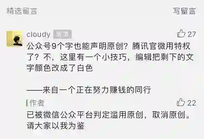 微信判定“腾讯”官方公号滥用原创,取消其原创标识