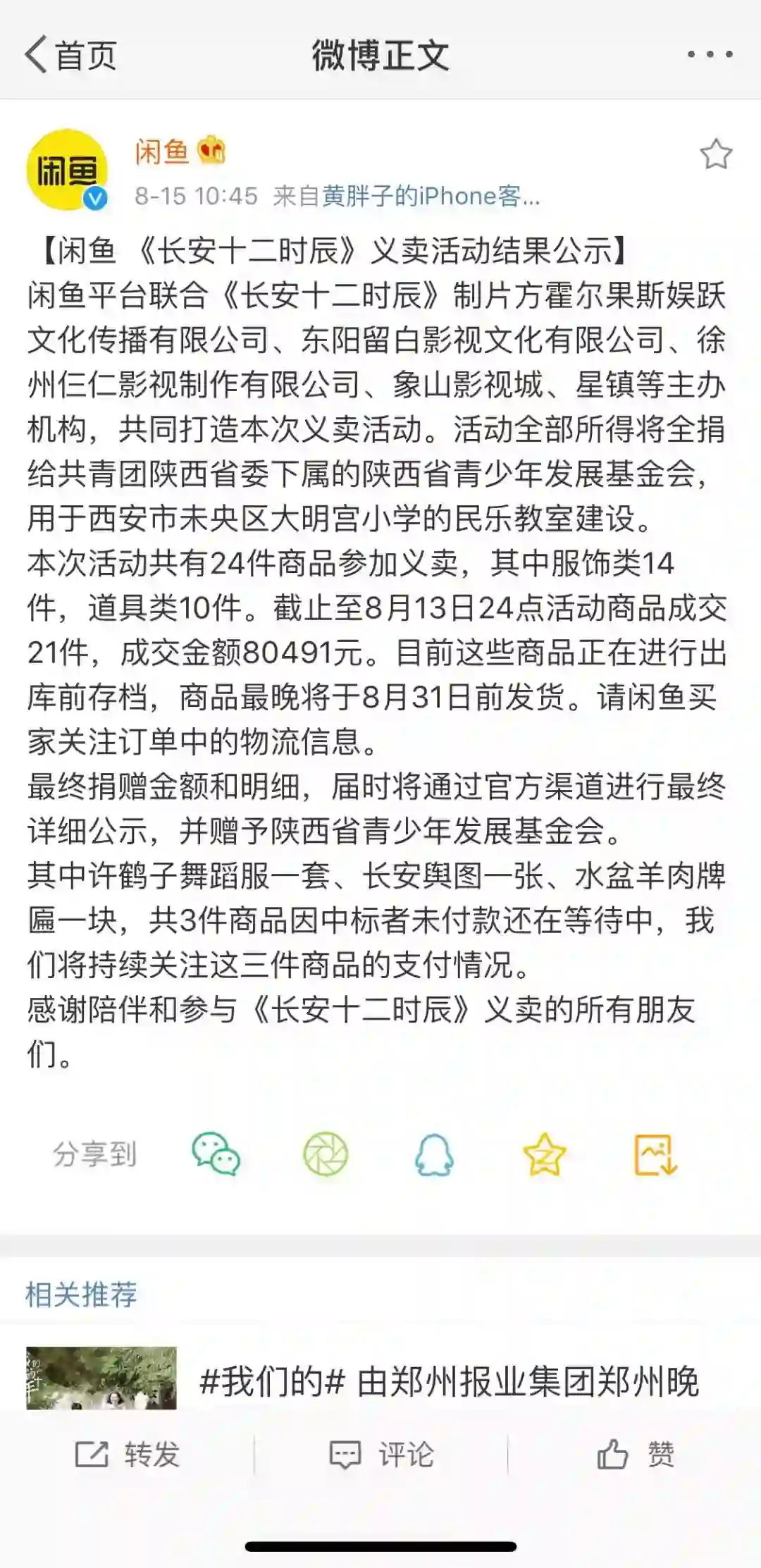 近期,《长安》中的24件服化道品于闲鱼平台开展义卖,以十二时辰开启十二专场,巧妙地呼应了剧情。