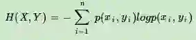 熟悉了一个变量X的熵,很容易推广到多个个变量的联合熵,这里给出两个变量X和Y的联合熵表达式: