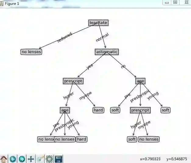 lensesTree = trees.createTree(lenses, lensesLabels)