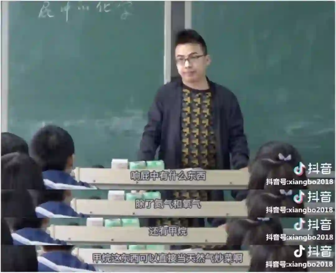每个视频他都会加上一个“万物皆化学”的标签,生活中的现象是他的授课素材。晚自习时,他注意到一些学生不吃正餐,只吃苹果作为晚饭,他讲“减肥中的化学”。班上部分女生想尝试化妆,还关注美白,他就阐释了美白中的化学常识。为了讲明白“响屁不臭,臭屁不响”,他录制了“放屁中的化学”。
