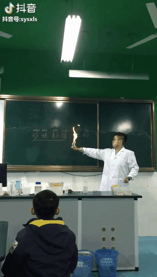 每个星期,徐鹏飞会定期上传自己操作化学实验的视频。他是一位教育机构的老师,给小学生普及自然科学知识。最受欢迎的是“阿拉丁神灯”,把一勺高锰酸钾倒入装了过氧化氢溶液的试管中,试管的顶部会升腾起坨坨“白云“。危险系数有些高的“火焰掌”,能让手掌着火却没有痛感,那是关于丁烷和洗手液反应的秘密。
