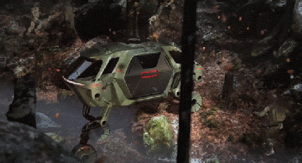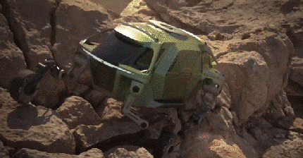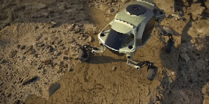 这种设计具有独特的哺乳动物和爬行动物步态,可以向任何方向移动。腿部也折叠成收起的驾驶模式,切断接头的电源,使用集成的被动悬挂系统可以最大限度地提高电池效率。