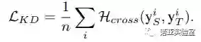 于是,我们使用交叉熵损失来使得学生网络的输出符合教师网络的输出,具体的损失函数为: