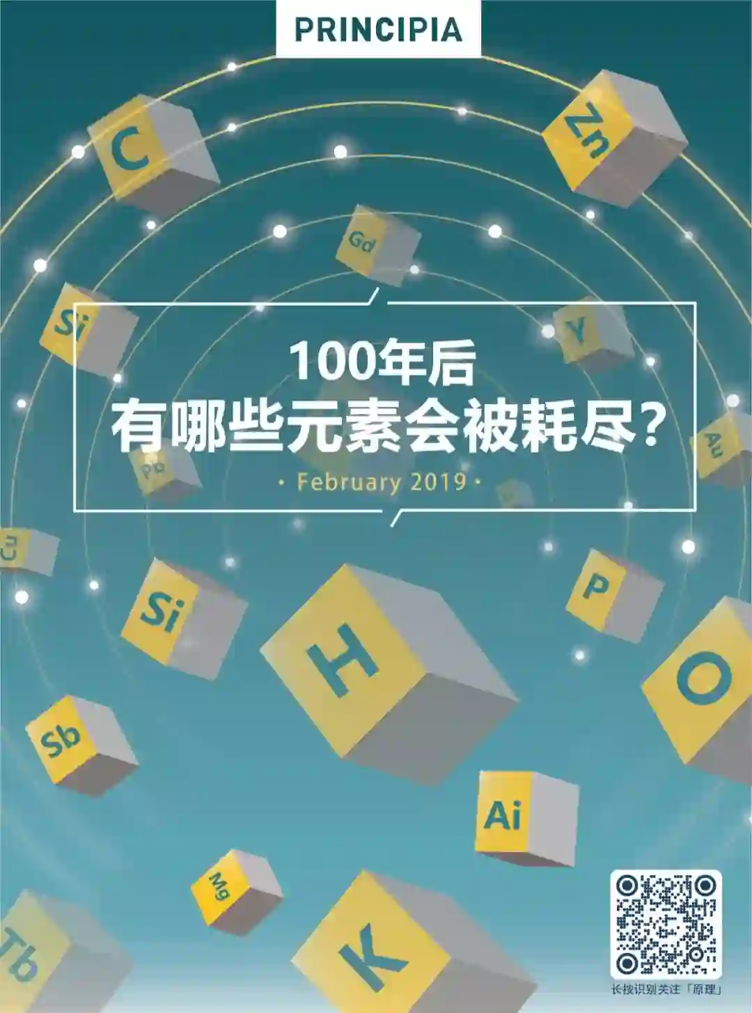 用红色标记的元素表示的是,对这些元素的消耗将极大地降低它们在未来100年或更短的时间内的可利用性——这些元素有,氦(He)、银(Ag)、碲(Te)、镓(Ga)、锗(Ge)、锶(Sr)、钇(Y)、锌(Zn)、铟(In)、砷(As)、铪(Hf)和钽(Ta)。