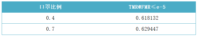 考虑到现有的一些生成口罩数据的方法,需要做3D人脸对齐(3DDFA)及人脸关键点检测。这种方法速度慢,影响训练速度,并且口罩类型有限,影响泛化效果。为了解决这些问题,团队采用了更简单有效的随机cutout的在线数据生成方法。这种在线数据生成方式具有速度快、口罩大小随机等特点,模拟了丰富的口罩样本。口罩增广的具体参数是:mask中心点选在(56,112),mask的宽高在[56,112]内随机采样,输入图片保持为112x112,从效果上可以看出,最大的模拟口罩会达到人脸的一半,而最小的模拟口罩只会遮住嘴部区域,如下图所示。另外团队还尝试了不同的口罩数量比例,从消融实验可以看出,增加口罩样本的比例,对测试集的效果有一定的提升。