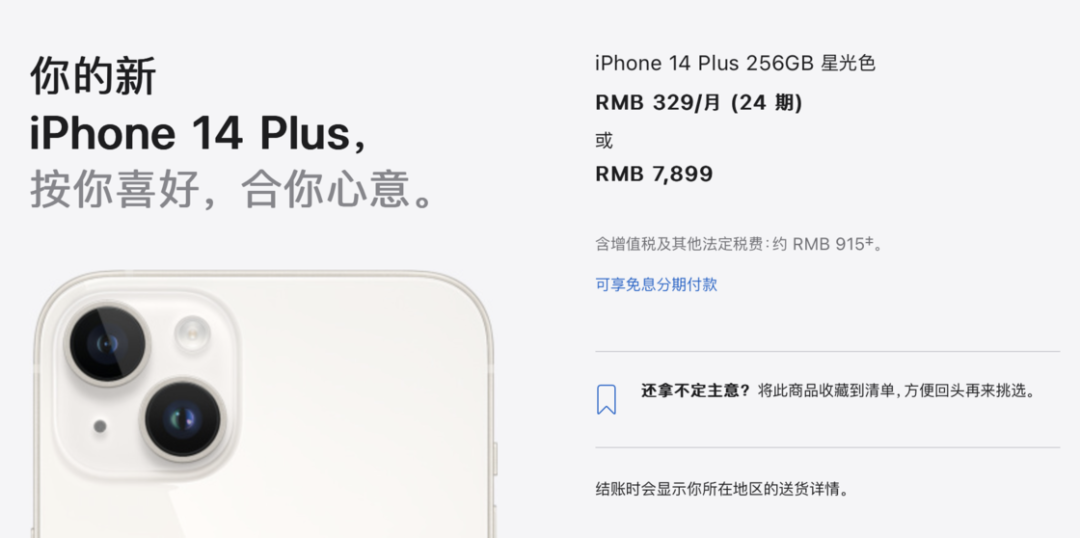 在这里,我要单独将 iPhone 14 Plus 分出来做一个小讨论。不单单只是因为它发售时间更晚,而是它独特的形态。可以说,iPhone 14 Plus 十分具有「卖爆」的潜力。从过往的手机更新历史来看,更大的屏幕一定是更具有吸引力的。相信 Apple 也是充分感受到了消费者「嘴上说喜欢小屏实际上根本不买」的嘴脸和 iPhone mini 系列的惨淡销量,在今年砍掉了 mini 机型,转而推出更大的 Plus。相信在 iPhone 11 系列及之前的用户群体中,iPhone 14 Plus 有着很大的吸引力。不过,其实它还有一种更加特殊的情况:给长辈买手机。iPhone 14 Plus 推出之后,我愿意称它为最适合给父母和老人买的智能手机之一:它屏幕大,有更多的面积来显示放大之后的文字内容,而满血的 A15 芯片也拥有「战未来」的性能,续航也是历代 iPhone 中最强的。同时,它铝合金的设计足够轻薄,影音体验卓越。再加上 iPhone 内置的不少辅助功能和 iOS 封闭的生态环境,更加易用的同时,还大大降低了长辈手机上总是被各种毒瘤软件和广告拖垮的风险。▍在哪里买作为最新款 iPhone,除了 Apple Store 外,各家都是争先恐后推出了各种预约优惠活动。