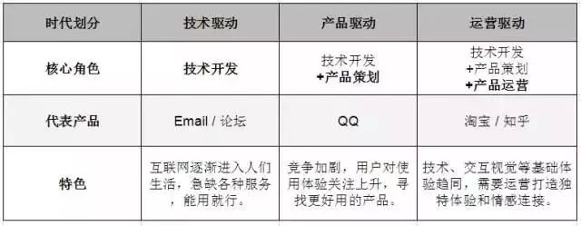 以时间发展线为划分,我们可以把这段简短而重要的历史分为几个时代:技术驱动时代、产品驱动时代、运营驱动时代,三个时代分别对应着驱动的力量:技术、产品策划和产品运营,我们一一细说。