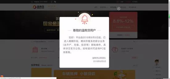 P2P平台温商贷8月5日发布展期公告称,平台遭遇有史以来最大的流动性危机。为保障投资人利益,经公司高管层联合商议决定,即日起正式进入展期阶段。目前平台创始人胡其丰已抵新疆,向新疆政府、监管部门及公安部门报备温商贷展期事宜及兑付方案。温商贷官网注册地为新疆吐鲁番鄯善县。