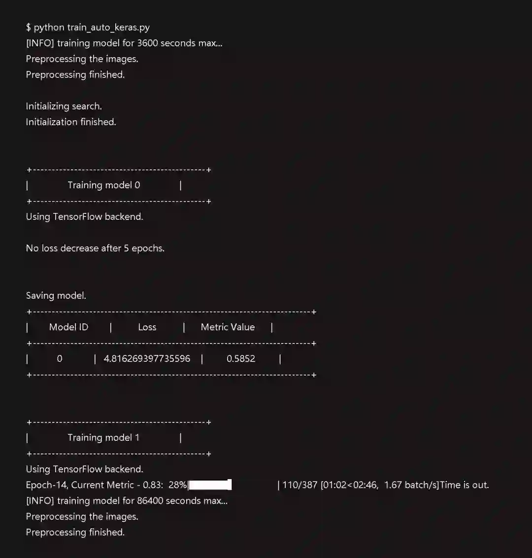 让我们继续使用Auto-Keras训练我们的神经网络。