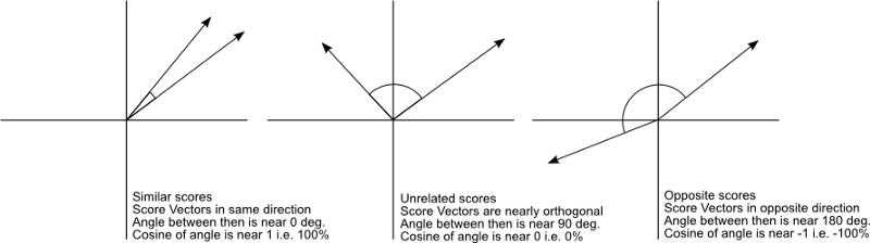 如果你不熟悉余弦相似度,这里我们简单温习下这一概念。余弦相似度测量两个向量的相似程度:基本上,它测量两个向量之间的夹角,如果两个向量方向正好相反,则返回-1,如果两个向量方向一致,则返回1。重要的是,它只测量向量的方向,而不考虑长度。