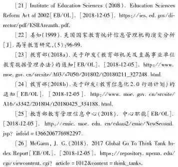 2018年1月,教育部印发的《教育部机关及直属事业单位教育数据管理办法》指出,由教育部统筹教育数据管理工作,建立统一的教育数据资源共享交流和开放平台,是我国国家层面推进教育数据的规范管理、互联互通和共享公开,确保数据安全,使数据更好地为教育改革发展服务(教育部,2018a)。