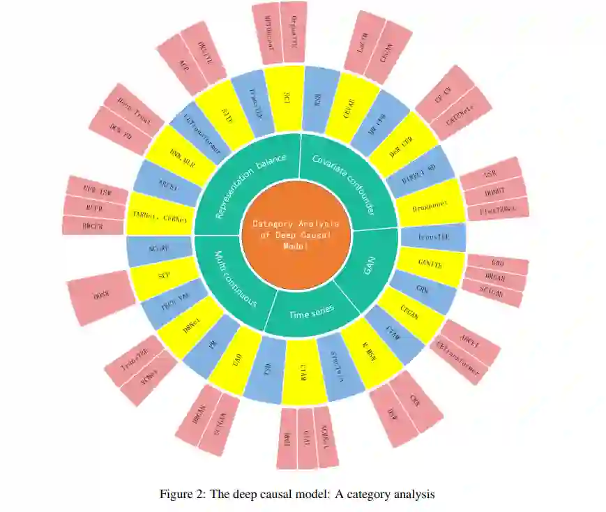因果关系概念在人类认知中起着重要作用。在过去的几十年里,因果推理在计算机科学、医学、经济学和教育等许多领域都得到了很好的发展。随着深度学习技术的发展,它越来越多地用于反事实数据的因果推理。通常,深度因果模型将协变量的特征映射到一个表示空间,然后根据不同的优化方法设计各种目标优化函数,无偏估计反事实数据。本文对深度因果模型进行了综述,其核心贡献如下: 1)提供了多剂量和连续剂量治疗下的相关指标; 2)我们从时间发展和方法分类的角度整合了深度因果模型的全面概述; 3)我们协助对相关数据集和源代码进行详细和全面的分类和分析。
