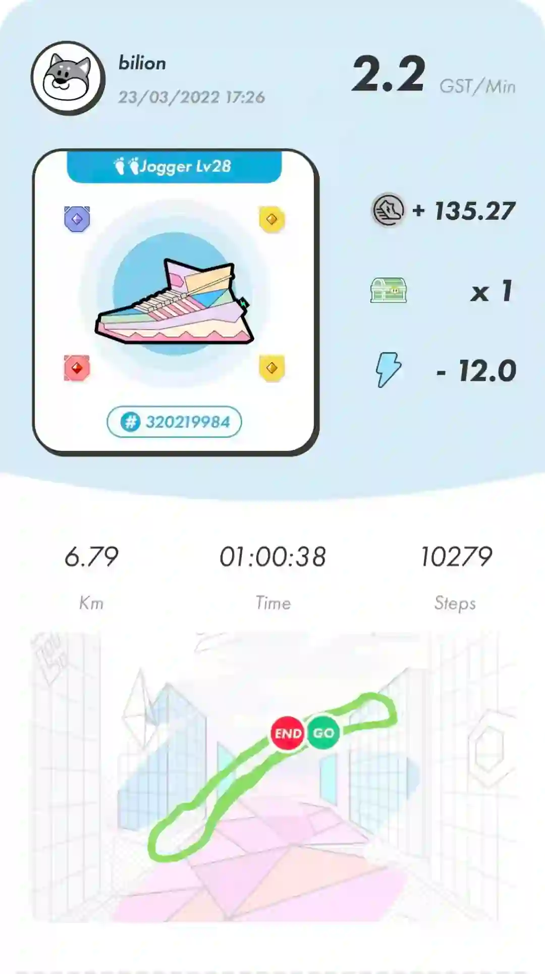 但能赚多少GST,总的来说,和能量值、跑步速度,以及运动鞋类型、属性、等级,宝石种类、数量等诸多因素相关。