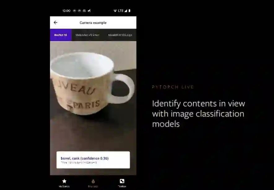 而基于 PyTorch 中的PyTorch Mobile,PyTorch Live就可以允许开发者在 PyTorch 生态系统中完成从训练模型到部署模型的全过程,而且它还提供了可用于创建可视化用户界面的 React Native 库。