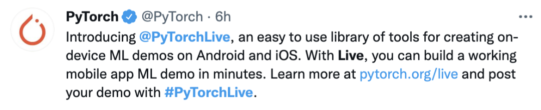 PyTorch官网声称,PyTorch Live是一个十分易于使用的工具库,使用PyTorch Live可以帮助开发者在几分钟内成功构建一个手机端机器学习演示APP。