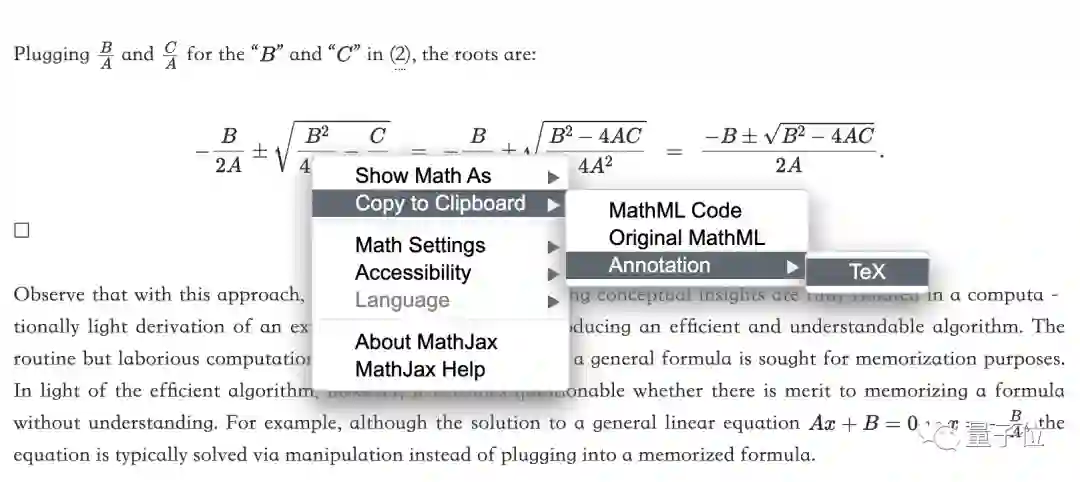 而且ar5iv还支持右键复制公式的LaTeX代码: